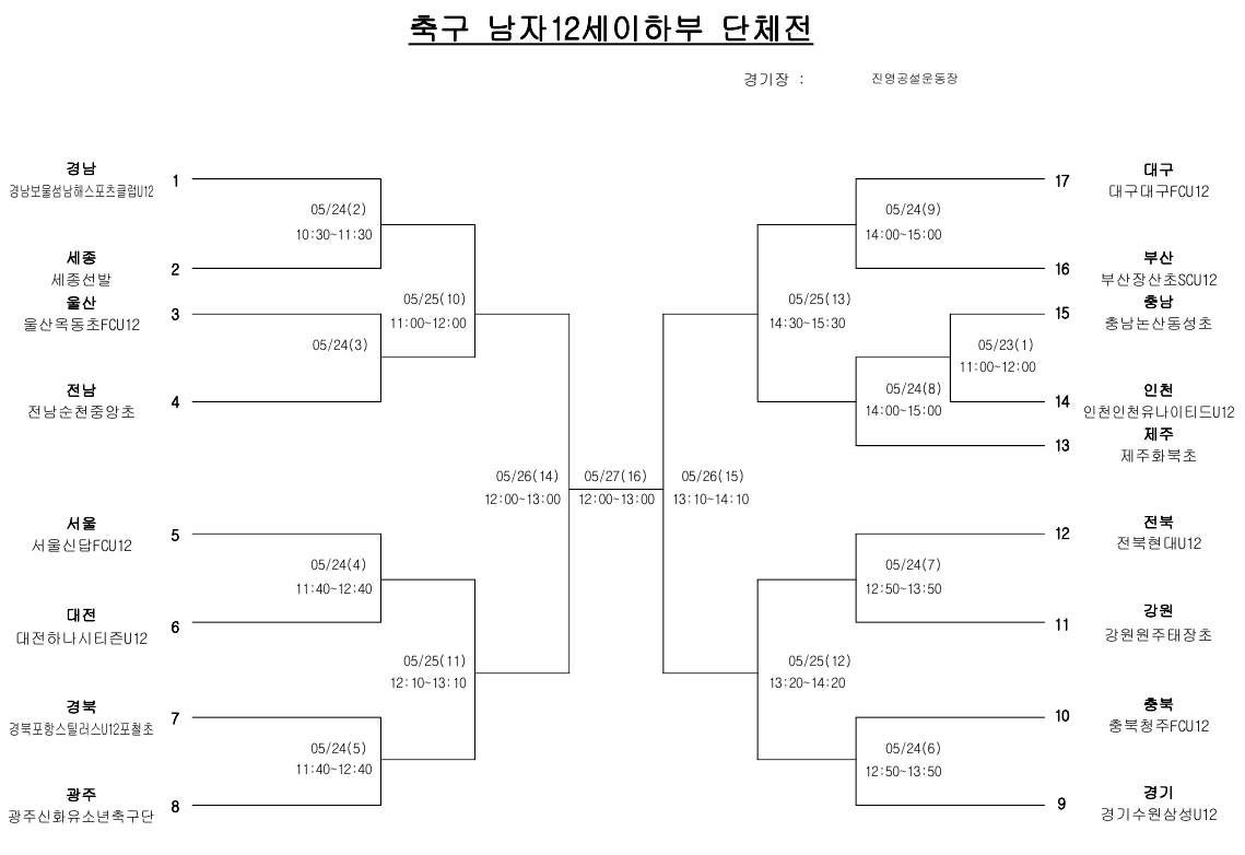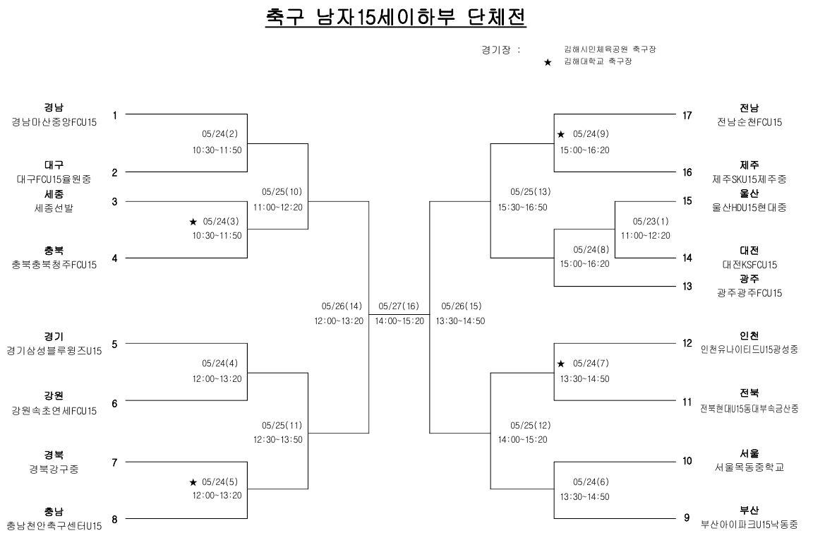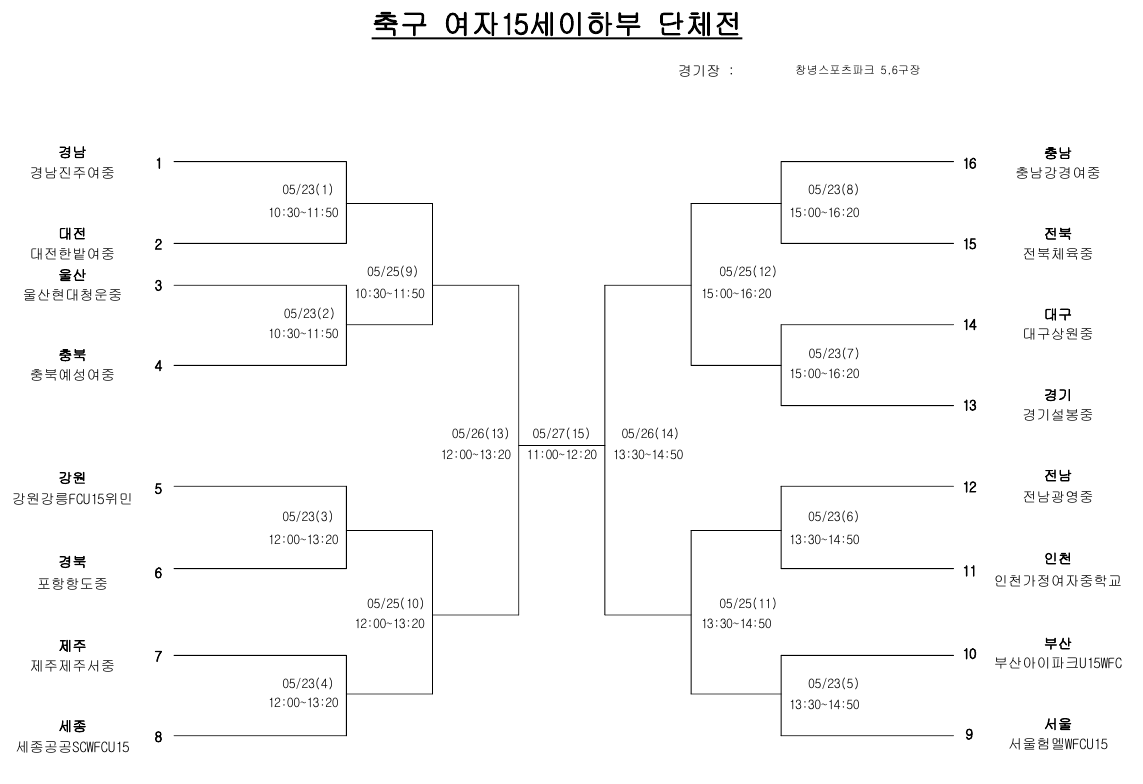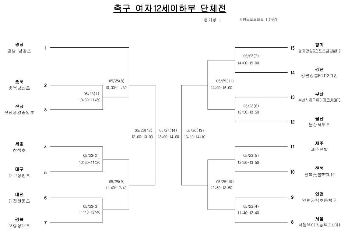 카테고리 없음 제54회 전국소년체전 축구 대진표 - 남자12세이하부 단체전, 남자15세이하부 단체전, 여자12세이하부 단체전, 여자15세이하부 단체 by 스카이기자 2025. 4. 30. 제54회 전국소년체육대회 - 축구 대진표.pdf 0.06MB 공유하기 게시글 관리 스카이스포츠 저작자표시 비영리 변경금지 (새창열림)